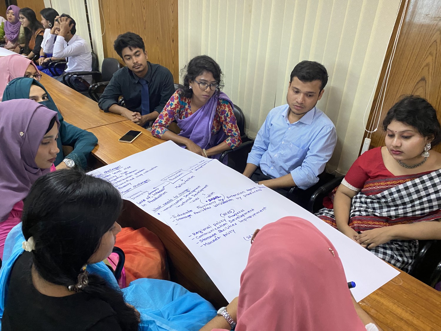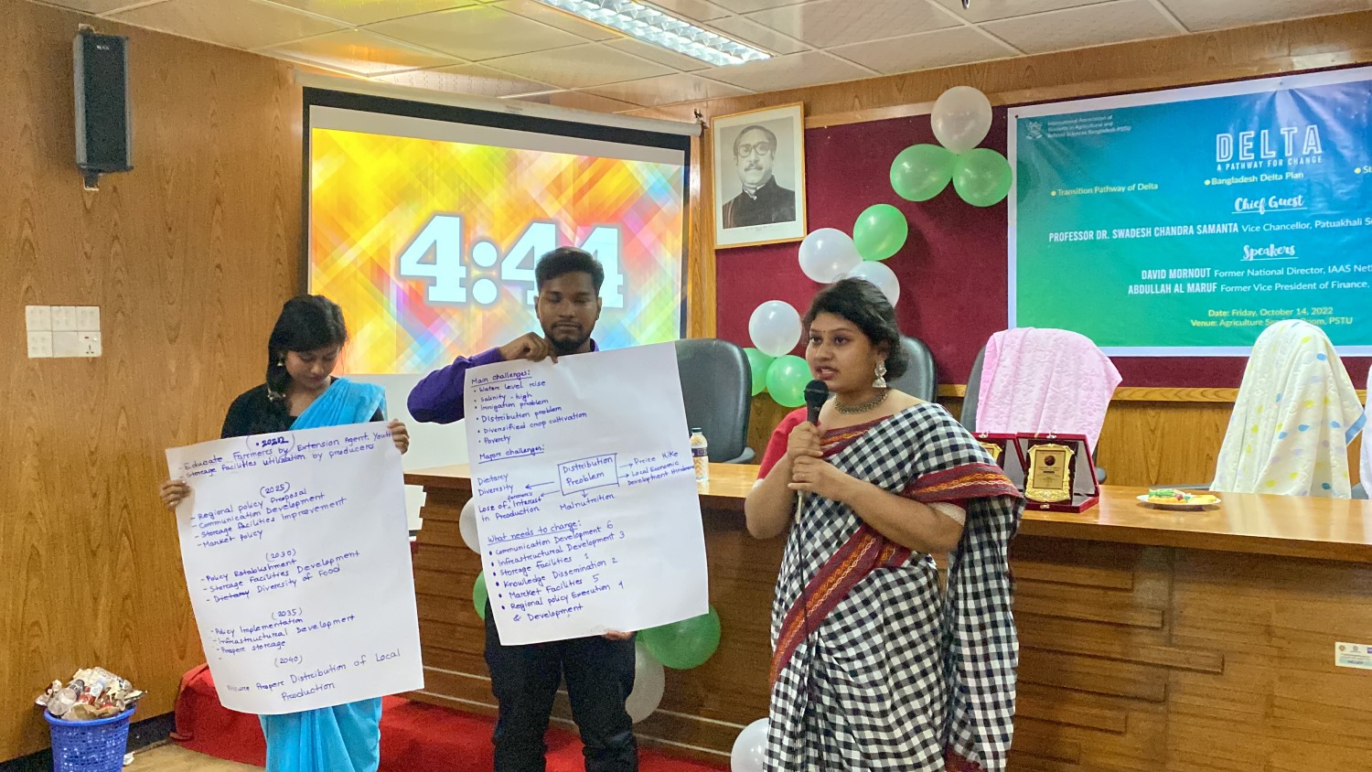 In September and October 2022, workshops on developing transition pathways for food systems in the Bangladesh delta were organised in collaboration with IAAS Bangladesh at Khulna University and Patuakhali University of Science and Technology (PSTU). In these workshops, student groups developed transition pathways for the future they envisioned for Bangladesh’s food system. In the workshop at Khulna University, students chose their geographical focus area, from the whole country to a specific community. Meanwhile, at PSTU, students were encouraged to focus on the Barisal region.