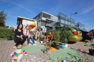 Merel Scheltema, student urban environmental management, did create a small park on one of the parking-spots near Gaia/Lumen on Wednesday 21 September, the international PARK(ing) Day.
