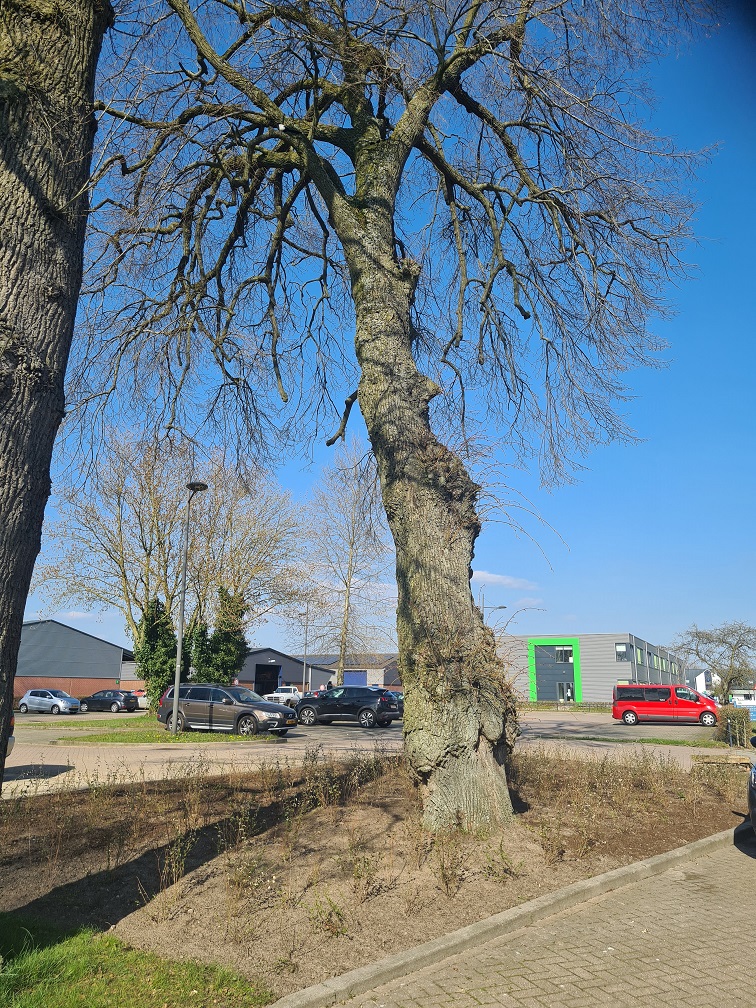 At the entrance to Unifarm, there are 6 monumental trees from around 1890. One of them, a linden, deteriorated badly. On the advice of Leo Goudzwaard, the tree's root system has been given more space. To this end, 3 parking spaces at Unifarm have been replaced by a section with flowering shrubs.