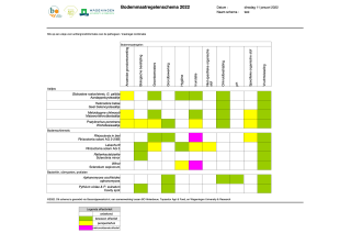 Molendijk is blij met het resultaat. “De tool brengt een rapport van honderd pagina’s over bodempathogenen terug tot één schema op maat, waarmee de akkerbouwer direct aan de slag kan. De tool is op dezelfde manier opgebouwd als het veel gebruikte aaltjesschema. De bedoeling is de tool later uit te breiden met bodeminsecten.”